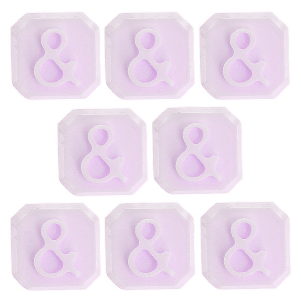 Mold & silicone with 8 cavities, specially designed to complement the letter mold that you can also buy in our online store. With this mold you will get square figures, 2 x 2 x 1.5 cm, with an & in relief. To fill the mold you need about 56 gr, that is, 7 gr for each piece.