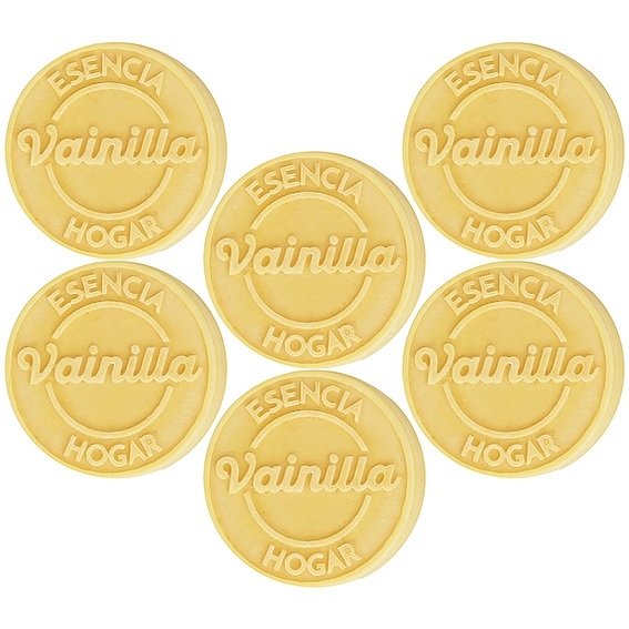 Mold to make vanilla scented wax. Very easy to use! It is silicone, resistant, non-stick and flexible, so it is very comfortable to work with. You can buy a mold to make a scented wax tablet or the mold with 6 cavities that allows you to make 6 pills at once. You will get some circular pills with the text: "Vanilla essence home". To make perfumed wax air fresheners, in addition to this mold, you will need: perfumed wax figures for burner, aromatic essence and liquid coloring for candles. All the materials are available here. Click on more details to see how to make scented wax with this mold. Once finished, you just have to place the pill in an essence burner, light a tea candle and let it melt little by little. It will give off an incredible aroma throughout the stay!
