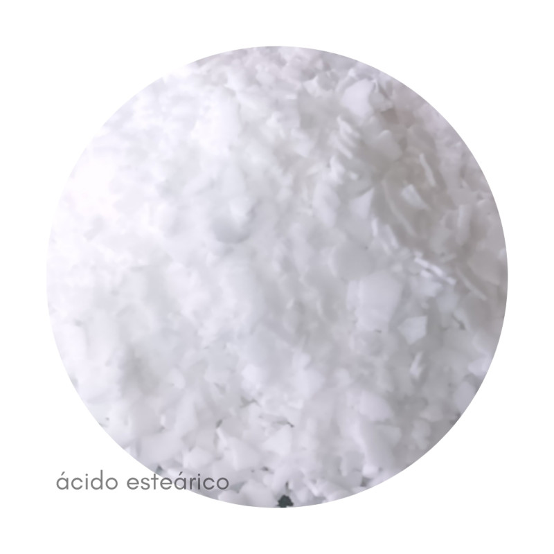 Stearic acid is a saturated fatty acid in the form of a waxy solid that provides consistency, opacity, and stability to cosmetic formulations. It is widely used as a secondary emulsifier and thickening agent in creams, lotions, solid soaps, balms, and deodorants. Its white or creamy appearance and waxy feel make it very workable in craft workshops.