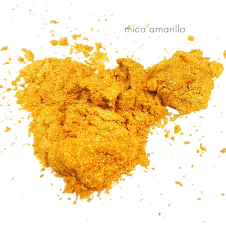 Yellow mica is a very fine, pearly yellow powder with a slight golden tinge. It is used both to create pearlescent finishes in transparent products (glycerin soap, gels) and to add color to opaque formulations (saponified soaps, creams, candles).