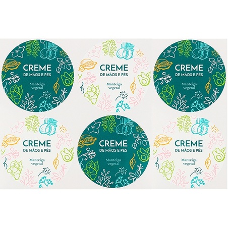 Blister of 6 round stickers , 7 cm, to label the hand and foot cream you make at home. The blister combines two models of stickers: some with a white background and others with a green background. All of them can be read "Hand and foot cream" and are decorated with a beautiful vegetable print in soft tones. It is a colorful and elegant design to give the perfect finish to your DIY elaborations. They are exclusive to our online store, in fact you will only find them here. The stickers that you can buy in Gran Velada stand out for their resistance and quality. They adhere perfectly on all types of surfaces (cardboard, paper, plastic, glass, aluminum...) and are water resistant. Get these stickers and get a perfect packaging for your DIY creams!