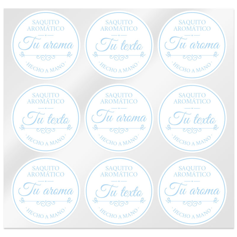 Vintage aromatic bag stickers, 3.5 cm in diameter, available in various colors. They can be customized with the name of the aroma you indicate. They are ideal for decorating aromatic bags. These are round stickers, with a vintage and elegant design. Where it now says "your aroma" we will write what you want: lavender, lemon, roses, vanilla ... They are exclusive to our online store, in fact you will only find them here. The stickers that you can buy in Gran Velada stand out for their resistance and quality. They adhere perfectly on all types of surfaces (fabric, cardboard, paper, plastic, glass, aluminum...) and are water resistant.