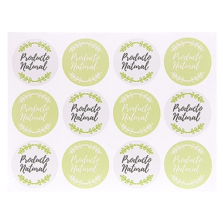 Blister of 12 round stickers natural product, 3.5 cm in diameter, ideal for packaging. Each blister combines 2 colors of stickers: white or light green background. They read "natural product" and are decorated with plant motifs. They have an elegant design and are exclusive to our online store. The stickers that you can buy in Gran Velada stand out for their resistance and quality. They adhere perfectly on different types of surfaces (cardboard, paper, plastic, glass, aluminum...) and are water resistant. Get these stickers and get a perfect packaging for your details!