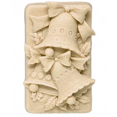 Molde de silicona diseñado para la elaboración de jabones navideños en forma de pastilla rectangular, adornados con hermosas campanas de Belén en relieve. Disponible individualmente o en un conveniente pack de dos moldes.