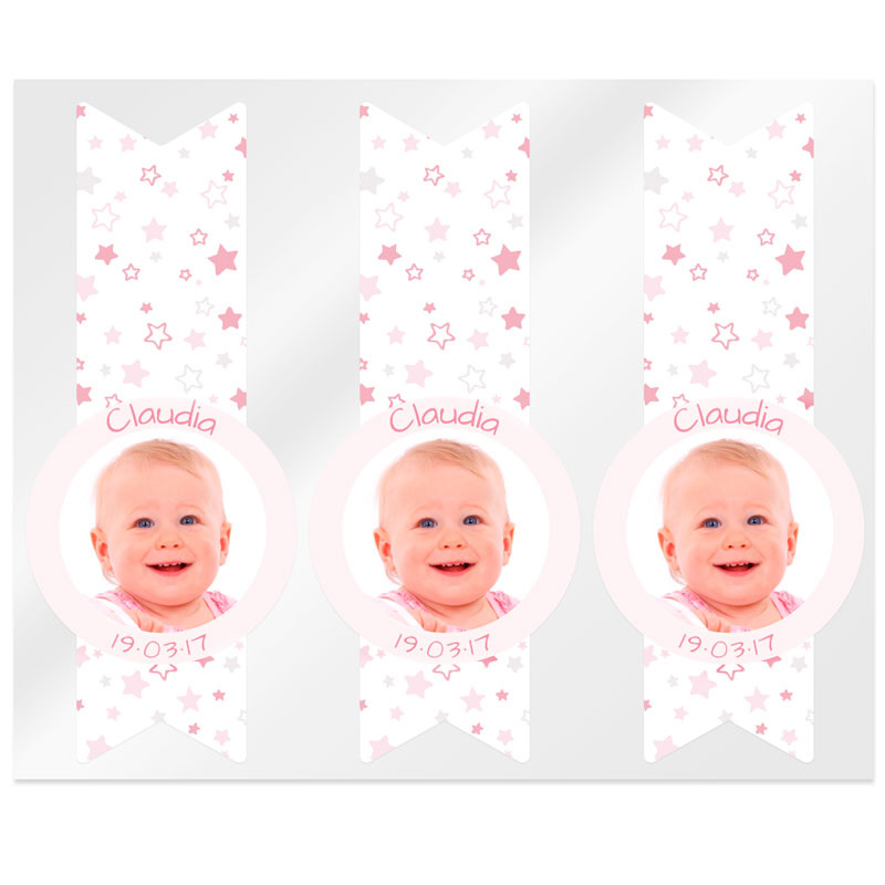 Paquete de 34 stickers personalizadas con foto, nombre y fecha, ideales para celebraciones de bautizo o comunión. Disponibles en una variedad de colores para adaptarse a tus preferencias. Cada sticker cuenta con un diseño alargado adornado con encantadoras estrellitas en diferentes tonalidades. La imagen se presenta en un formato circular, que personalizamos con la fotografía que nos envíes por correo. El nombre se sitúa en la parte superior de la imagen y la fecha del evento en la parte inferior. Nuestras stickers, disponibles en Gran Velada, están elaboradas con materiales de alta calidad y resistencia, lo que garantiza su durabilidad. Son perfectas para adherirse a diversas superficies y son completamente resistentes al agua. Apreciamos tu comprensión, ya que no aceptamos pagos a la hora de la entrega para las stickers personalizadas.Dimensiones: 10 x 2.5 cm; Foto: 4 cm de diámetro.¡No esperes más y realiza tu pedido en Gran Velada México! Crea momentos memorables y personalizados con nosotros. ¡Manos a la obra! 🌟