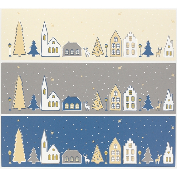 Las stickers se presentan en un blíster de 3 unidades pequeñas, de 17x5 cm, con un diseño especial de pueblo nevado. Su facilidad de uso le permitirá agregar un toque único y original a sus regalos navideños.