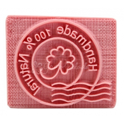 Sello de diseño exclusivo para sus jabones artesanales, perfecto para aportar un toque distintivo a sus creaciones personales. Este elegante diseño presenta un trébol de la suerte y la inscripción 'Handmade 100% natural'. Con este sello, de fácil manejo, podrá embellecer sus jabones naturales en un instante. Es compatible con jabones elaborados a base de aceite y de glicerina. El proceso de sellado es sumamente sencillo; únicamente deberá aplicar un poco de alcohol en el sello, presionarlo sobre la pastilla y ¡listo! Además, tiene la opción de añadir color con micas para realzar aún más su atractivo. En nuestra tienda en línea, encontrará una amplia variedad de sellos para jabones con diseños excepcionales. Medidas aproximadas: 4.5 x 4.1 cm.